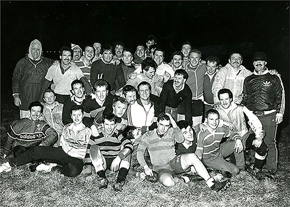 If you get bored or the weathers poor over the Bank Holiday weekend, here's something to keep you occupied. How many of these old faces can you recognize? Here's a clue, the photo was taken at a training session before we played Cardiff RFC in the cup.